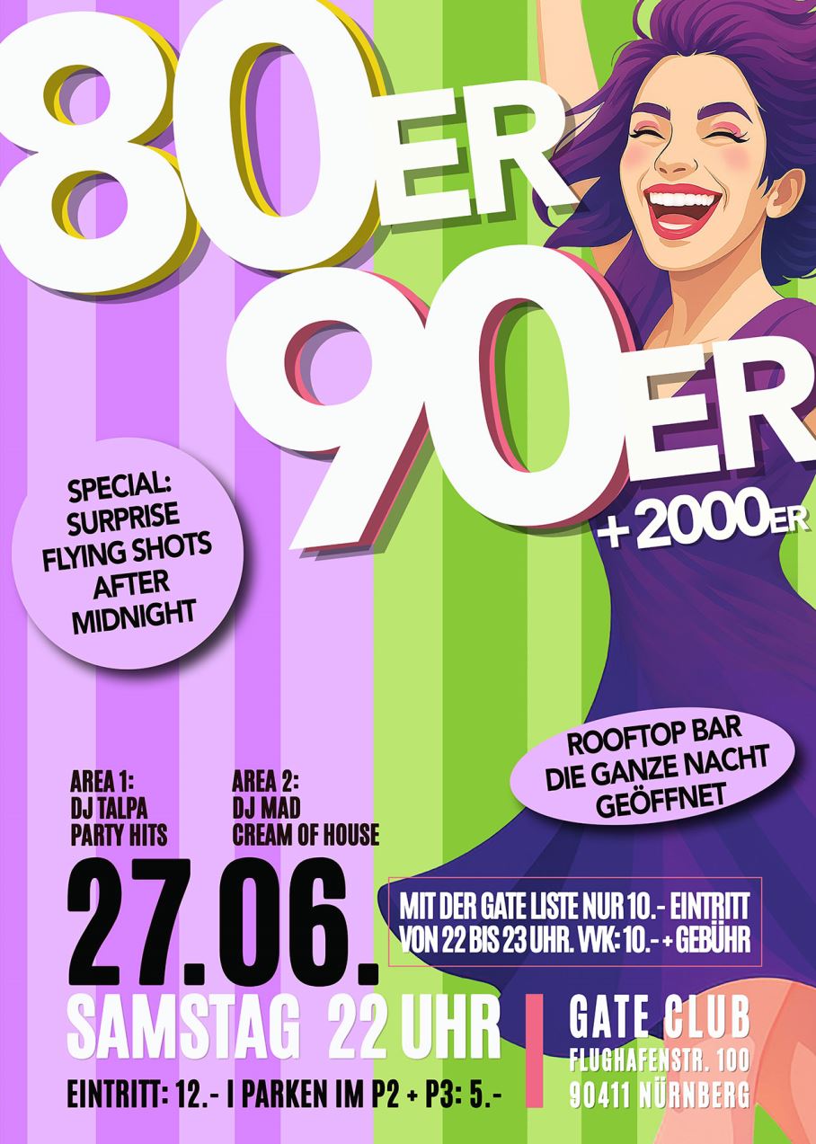⚡ Kult-Hits nonstop beim "80er/90er Gate plus 2000" am Samstag, den 27.06.2026 ab 22 Uhr in Area 1 mit DJ Talpa! Feiert mit uns eine Sommernacht voller legendärer Beats und purer Feierlaune! 🚀 In Area 2 spielt euch DJ Mad das Beste aus seiner Cream of House Music!